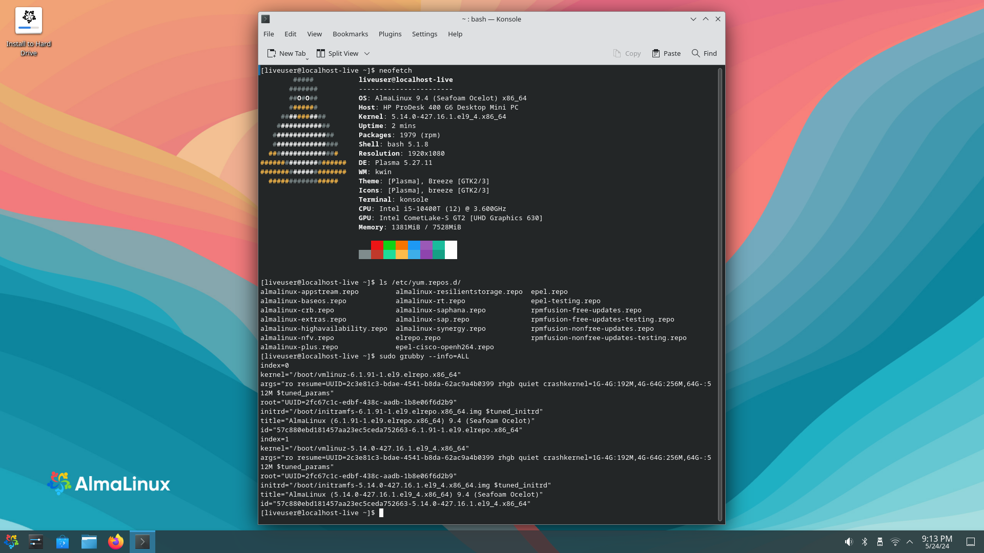 Follow Custom AlmaLinux 9.4 KDE Live ISO