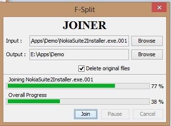 - Joins any files splitted with this tool and also some other tools