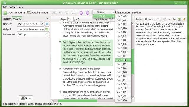 gImageReader is a simple Gtk/Qt front-end to tesseract. Features include: