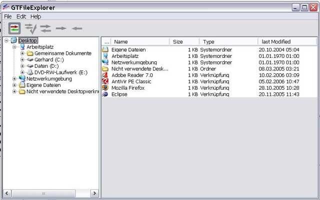 GTFileExplorer is a Filemanager. You can copy,paste,cut,delete and rename files per shortcut,menu,popupmenu and drag&drop.You can also open files with an external program. The main functionality is the synchronization of two directories, with a preview.