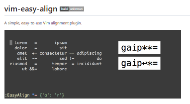 vim-easy-align is a Vim/Neovim plugin that makes it simple to align text by a pattern, character, or regular expression across a selection or motion. Instead of hand-inserting spaces and fiddling with tabs, you select lines and invoke an interactive prompt that previews the alignment as you type the rule. It supports multiple delimiters—commas, colons, equals signs, pipes—and can align on the nth occurrence or on complex regex groups. The plugin is designed to be composable with normal Vim workflows, working in visual mode or with motions, and honoring your indentation and tab settings. It also offers left, right, and center alignment, plus padding and justification control, so tables, hashes, assignment lists, and Markdown fragments look neat. Because it’s fast and keyboard-centric, it’s ideal for refactoring code as well as tidying prose and documentation inside Vim.