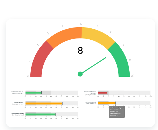 Embed custom-developed insights in your apps such as recommendation engines, sentiment analysis, anomaly detection, and fraud detection while receiving user engagement analytics delivering new value to your customers and product analytics for your teams. Advanced analytics delivered through Qualetics’ secure, the multi-tenant interface generates new levels of collaboration between your team and your customers as they view, analyze, share, export, and subscribe to valuable insights in real-time. Qualetics’ AIMS captures multi-dimensional data points from your apps in real-time powering advanced analytics and AI-based outcomes. With the help of our proprietary page rank and error ranking algorithm, we provide a quality index of your product with breakdowns that inform you how critical the errors are, how frequently they occur, and how many users are impacted. With the help of Qualetics, your product’s Performance Index score informs you how your application is performing.