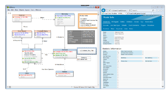 Visualize database structures and better understand existing databases and relationships. Create high-quality logical and physical data models. Reverse engineer existing database structures to view them in a diagram. Generate detailed HTML, RTF or PDF reports. Create quality database structures or make changes to existing models automatically, and provide documentation on multiple platforms. Build complex logical and physical entity-relationship models, and easily reverse and forward engineer databases. Connect multiple databases natively and simultaneously, including Oracle, SAP, MySQL, SQL Server, PostgreSQL, DB2, Ingres, and Microsoft Access. Synchronize models with existing databases using Change Script Generations and Update Model features. Easily convert data structures from one database platform to another to support business migration initiatives. Easily generate detailed hyperlinked reports on existing database structures in multiple formats like HTML and PDF.